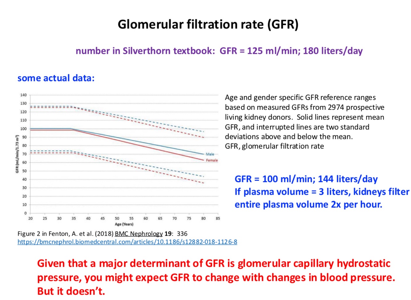 Given that a major determinant of GFR is glomerular capillary hydrostatic pressure, you might expect GFR to change with changes in blood pressure.