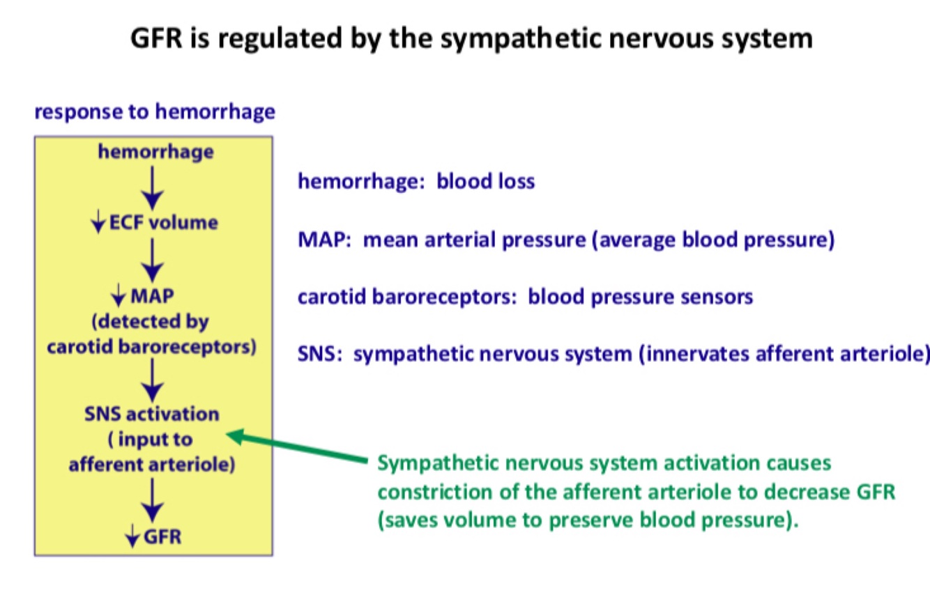 How is GFR regulated by the sympathetic nervous system?