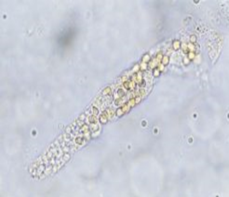 Haematuria with RBC casts and dysmorphic RBCs (urine microscopy)