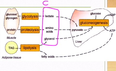 There is also an increased supply of precursors, i.e. glycerol and amino acids, along with increased fatty acids.