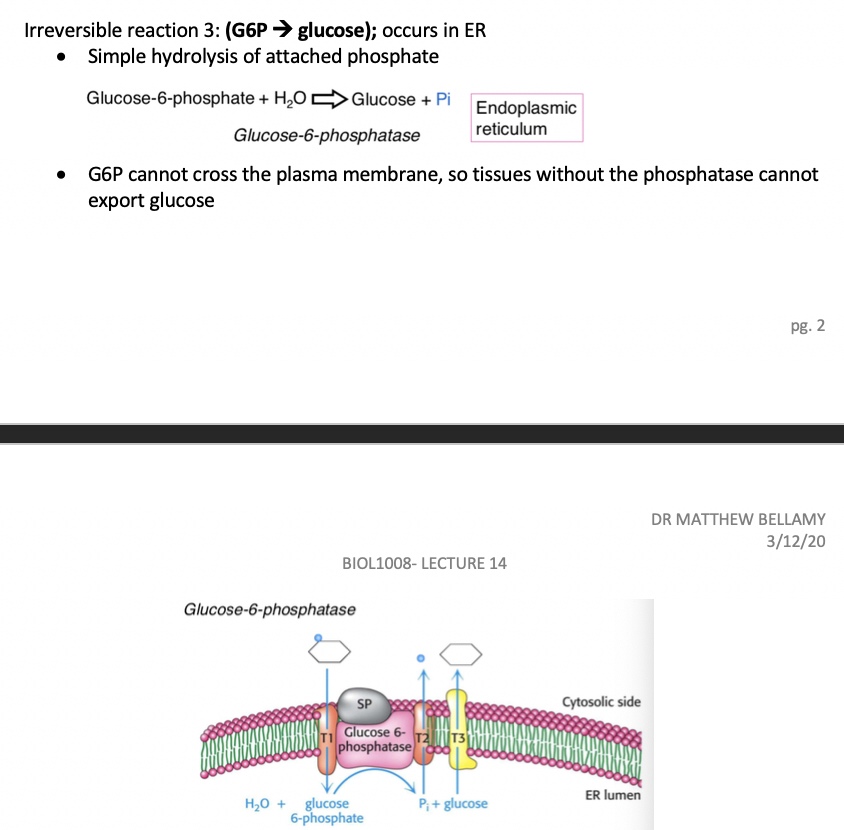What happens in the Irreversible reaction 3: (G6P –> glucose); occurs in ER