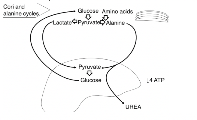 The following shows the cori and alanine cycle