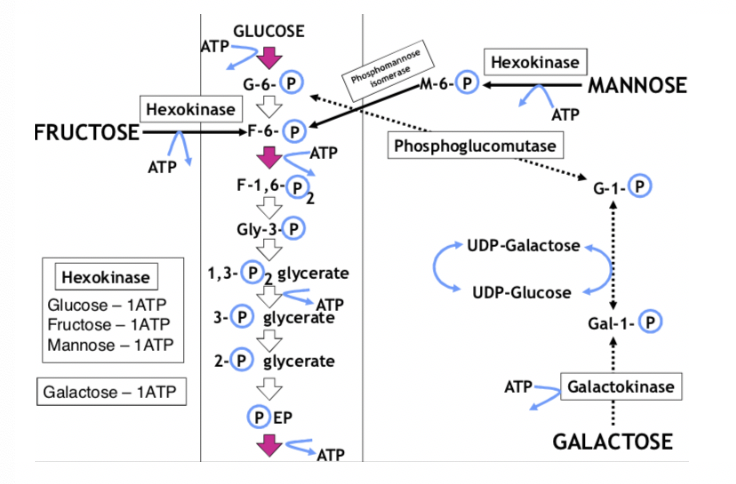 What are the steps to how Fructose and Mannose produce F6P?