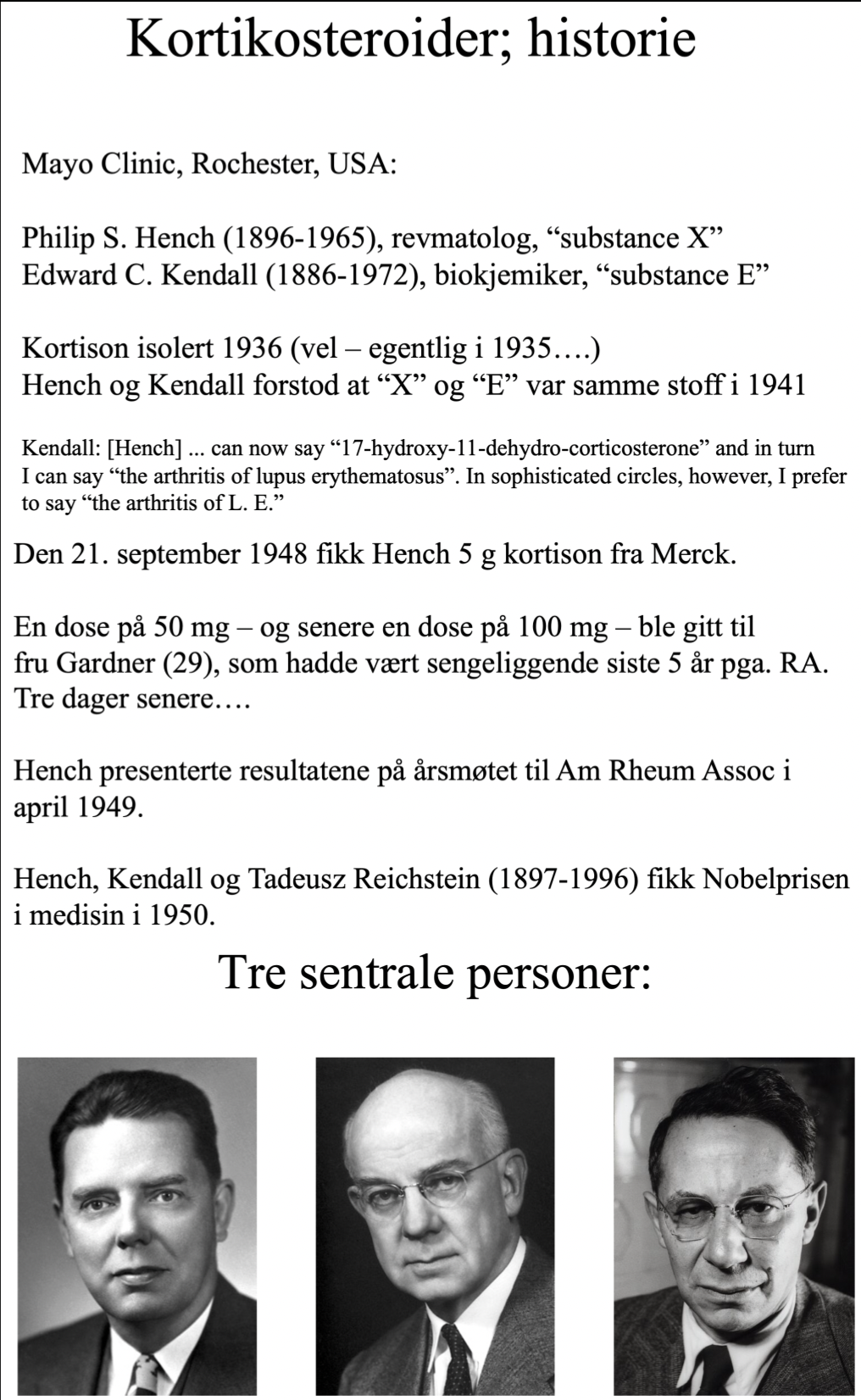 Hvilke tre personer har vært sentrale i kortikoidenes historie?