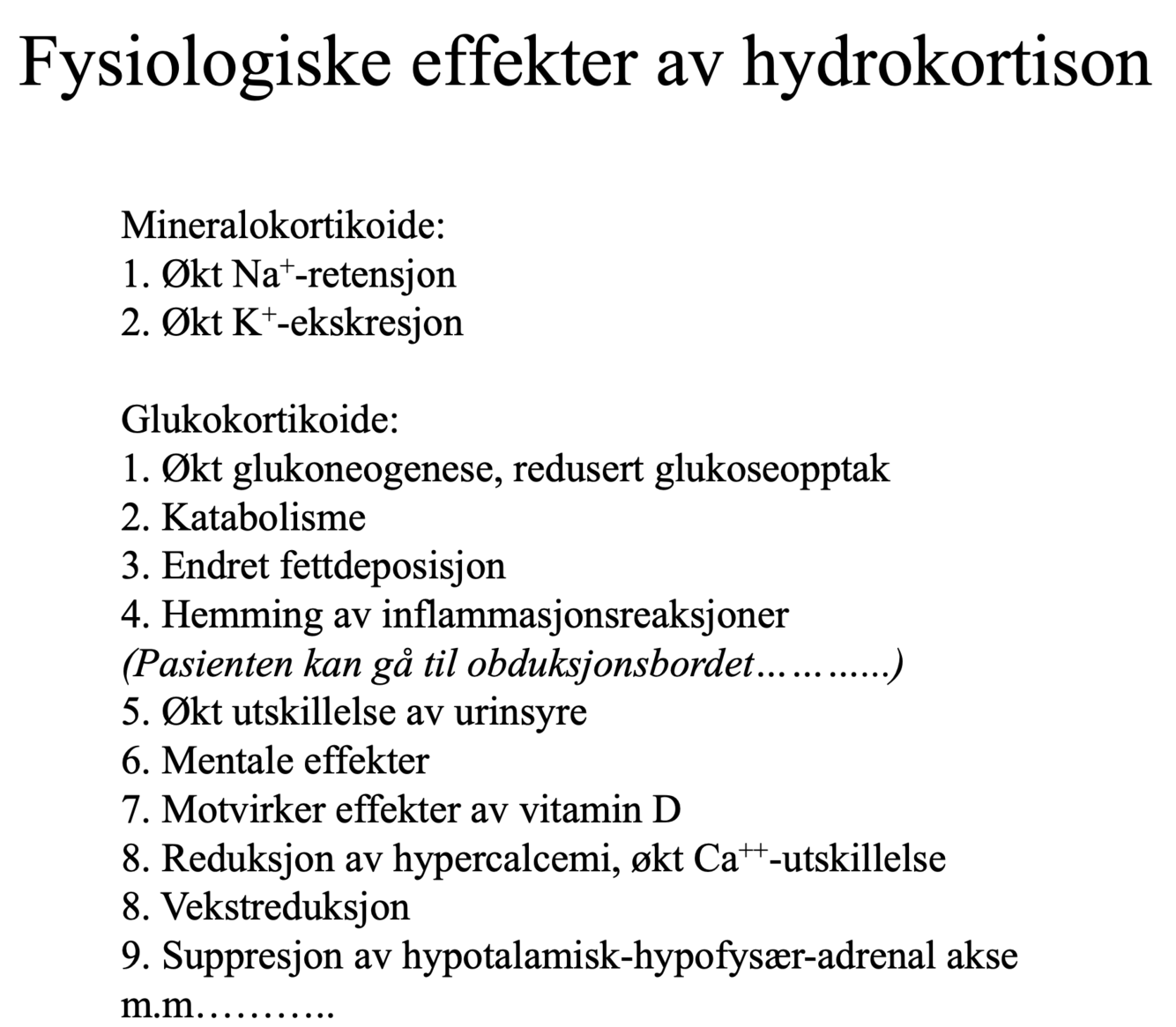 Hvilke fysiologiske effekter får man av hydrokortison?