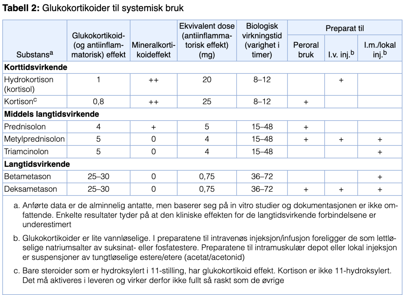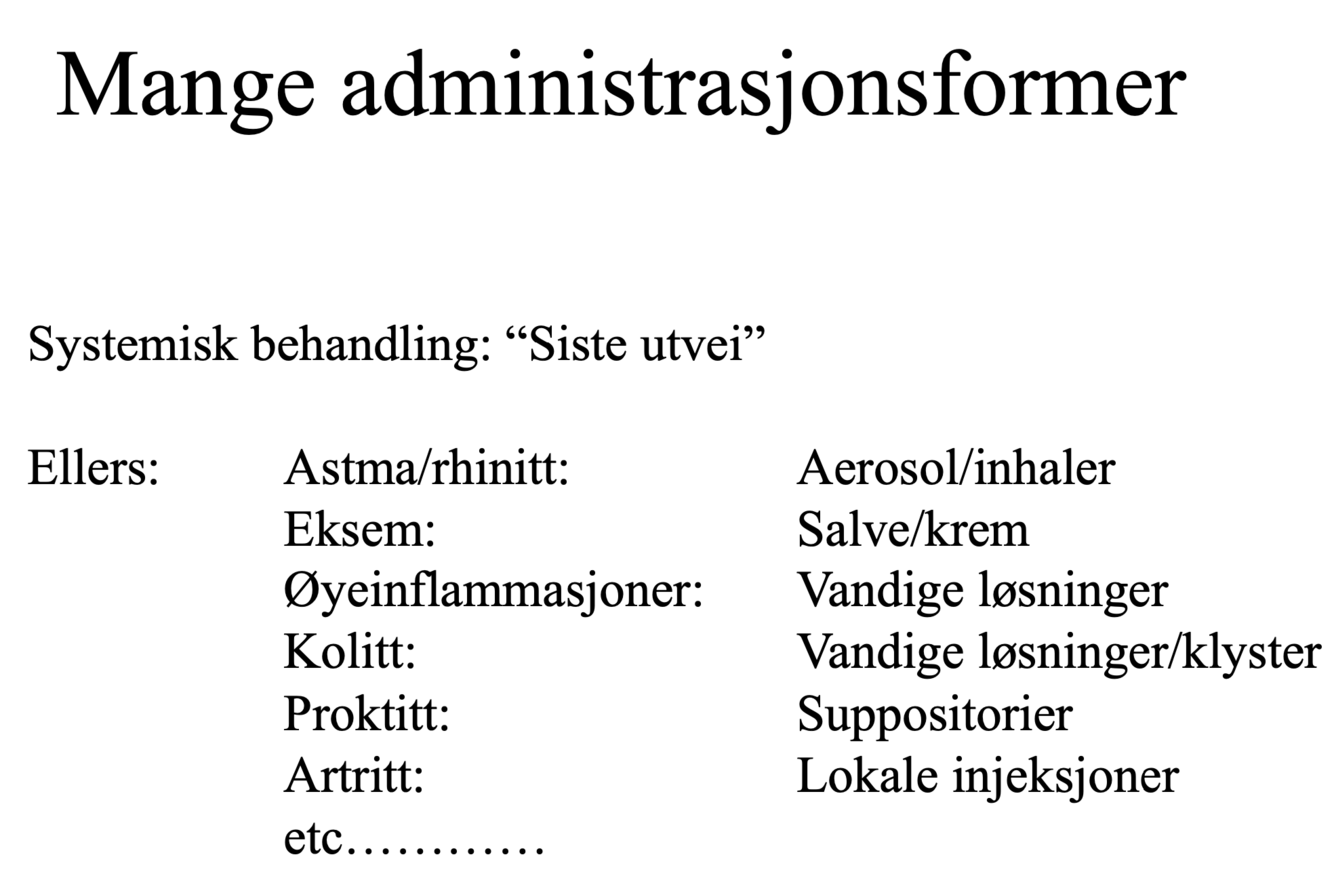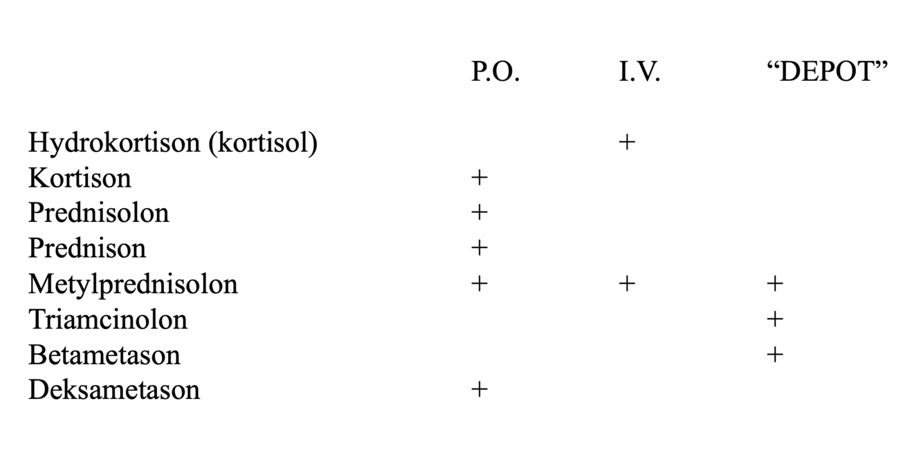 Hvilke administrasjonsformer har man av glukokortikoider?