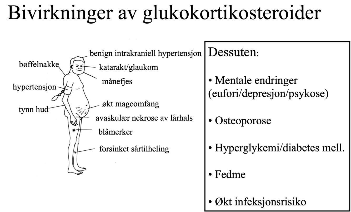 Hvilke bivirkninger finnes ved bruk av glukokortikoider?