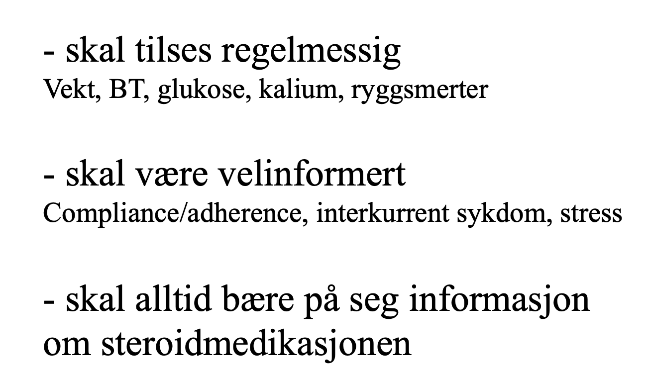 Hva skal man alltid passe på hos pas. som står på systemiske steroider?