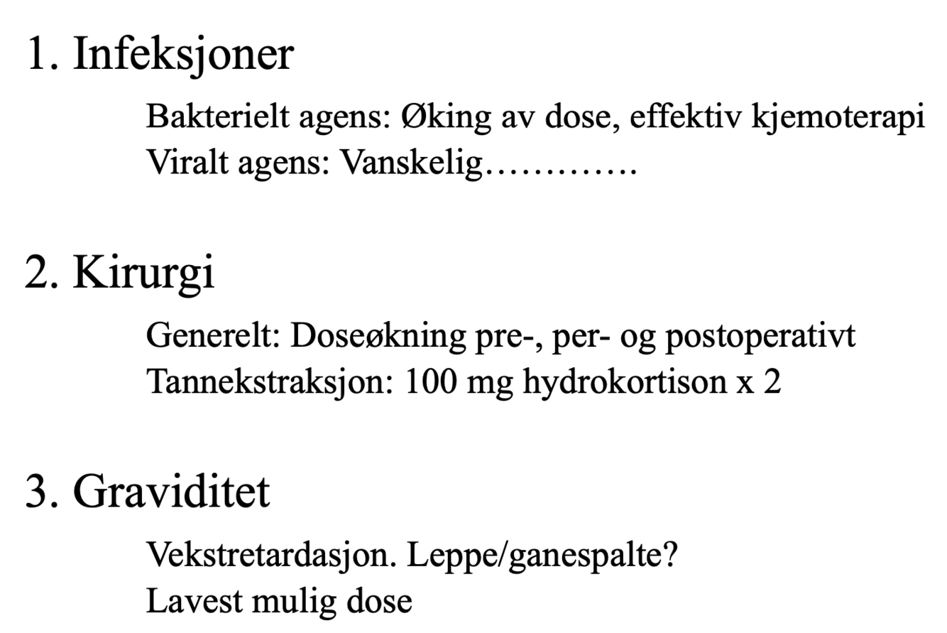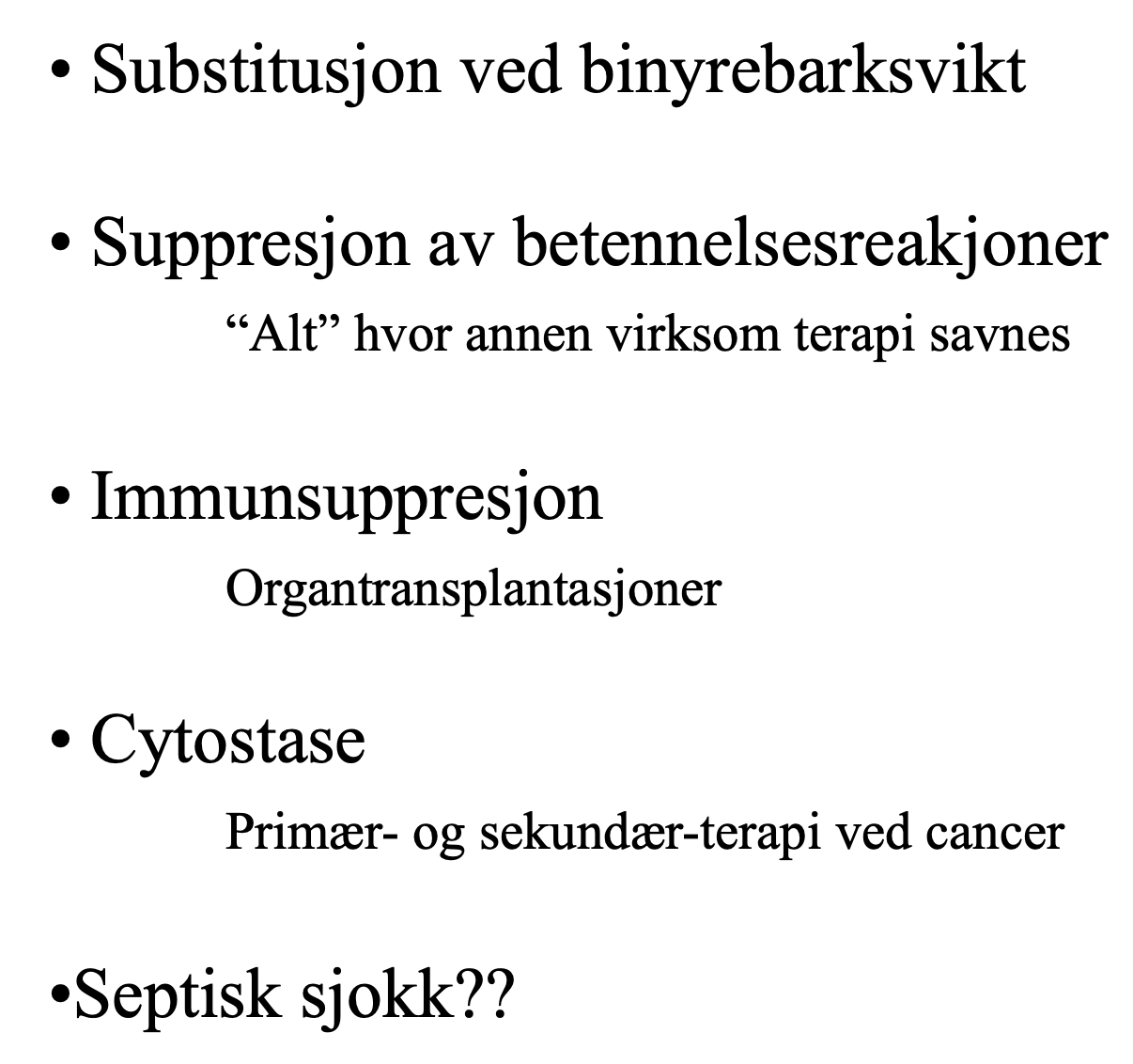 Hvilke indikasjoner har man for bruk av kortikosterioder?