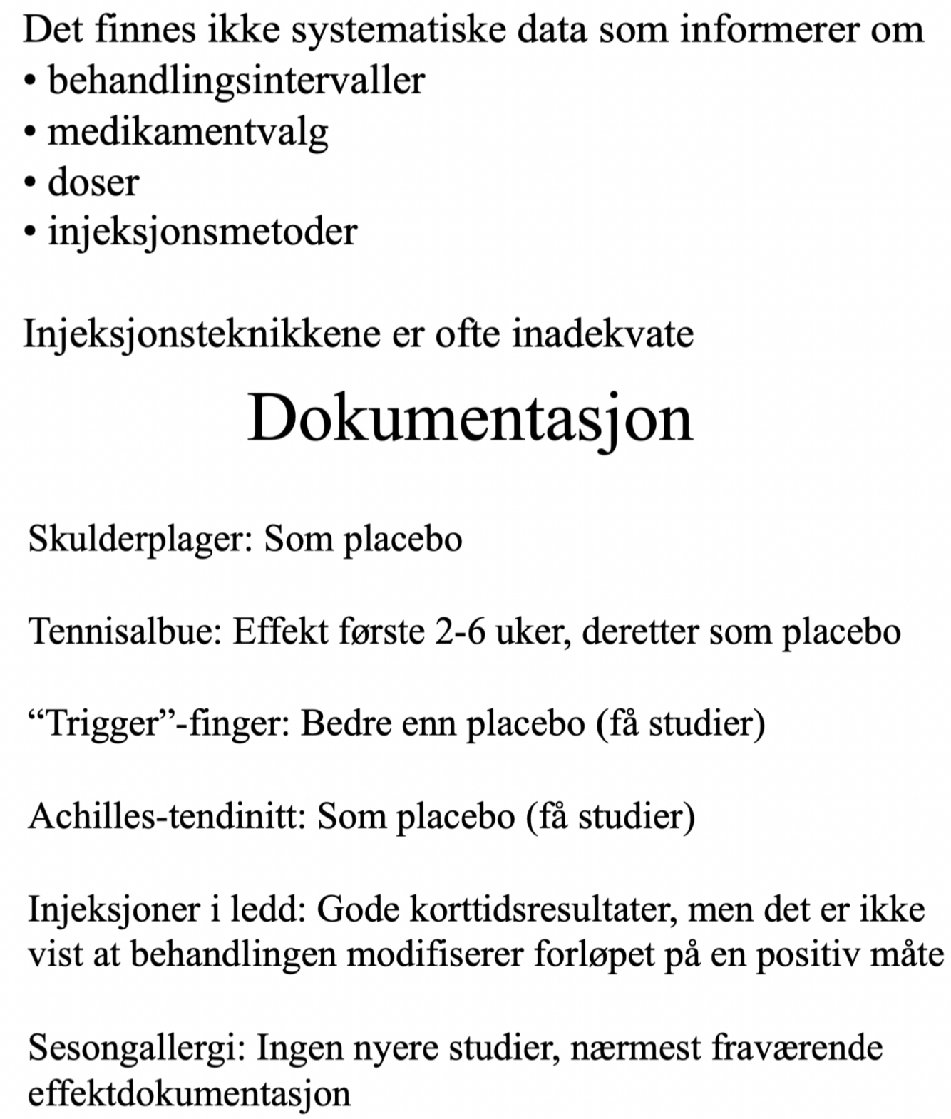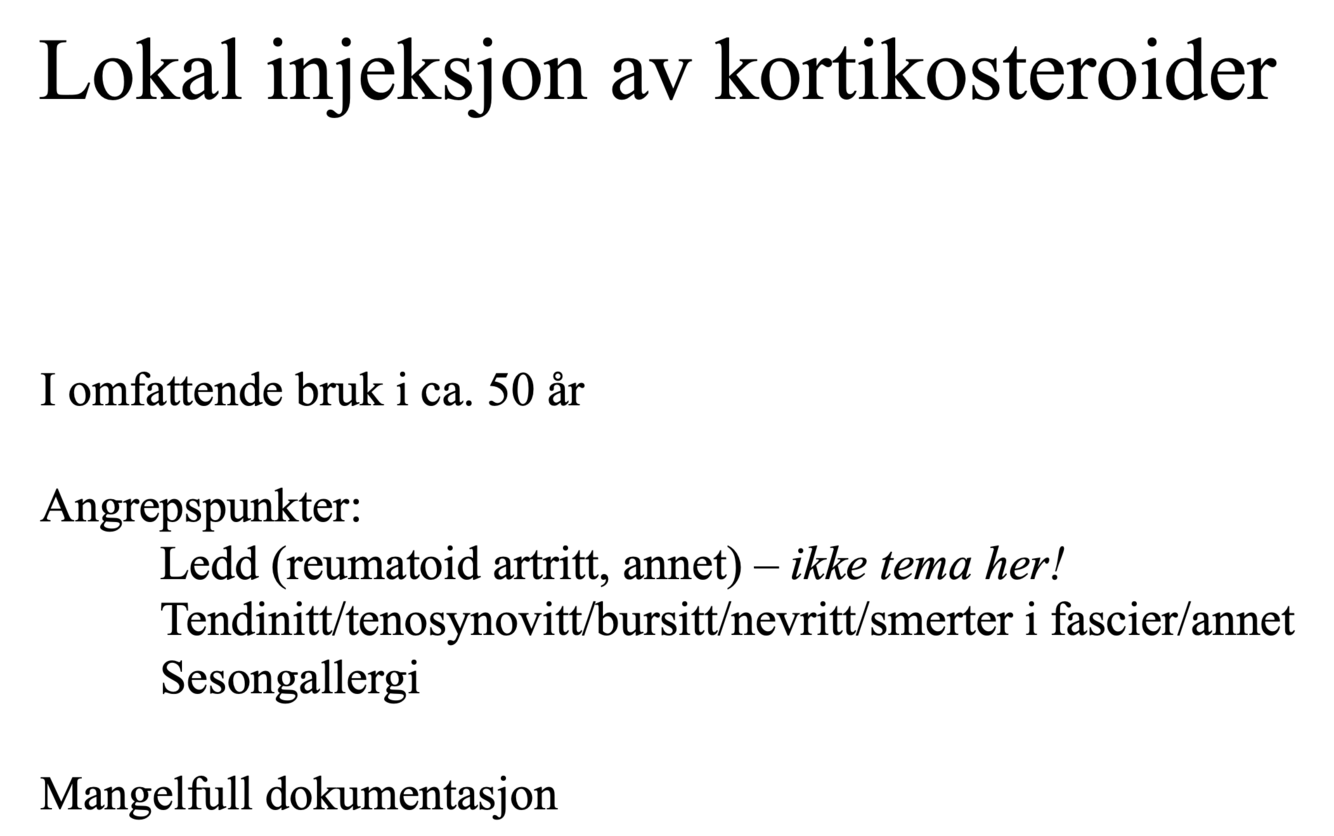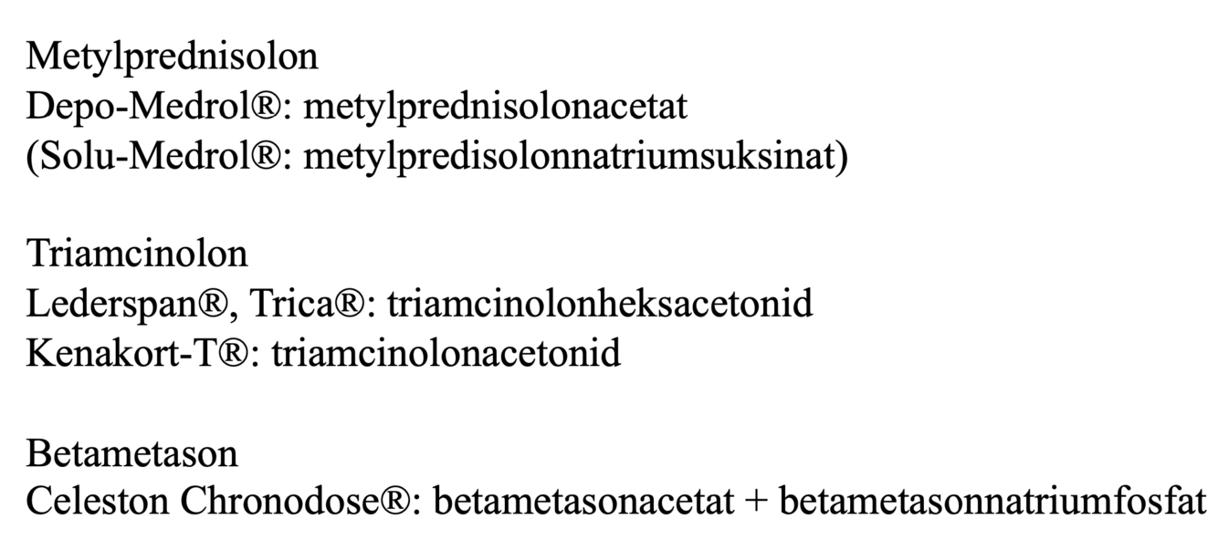 Hvilke problemer støter man på når det gjelder bruken av kortikosterioder som injeksjon?