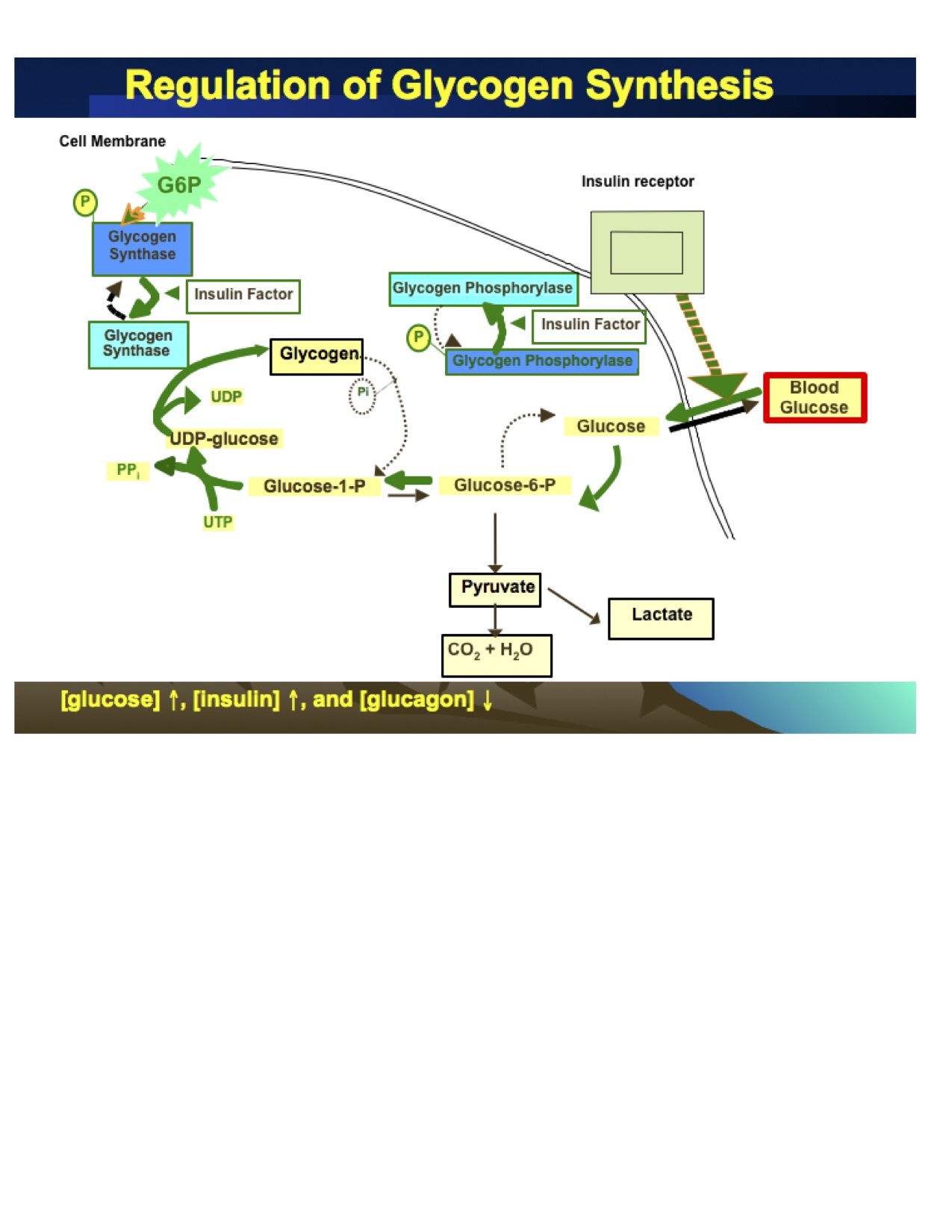 How is glycogen synthesis regulated by hormones (covalent modification)? (18)