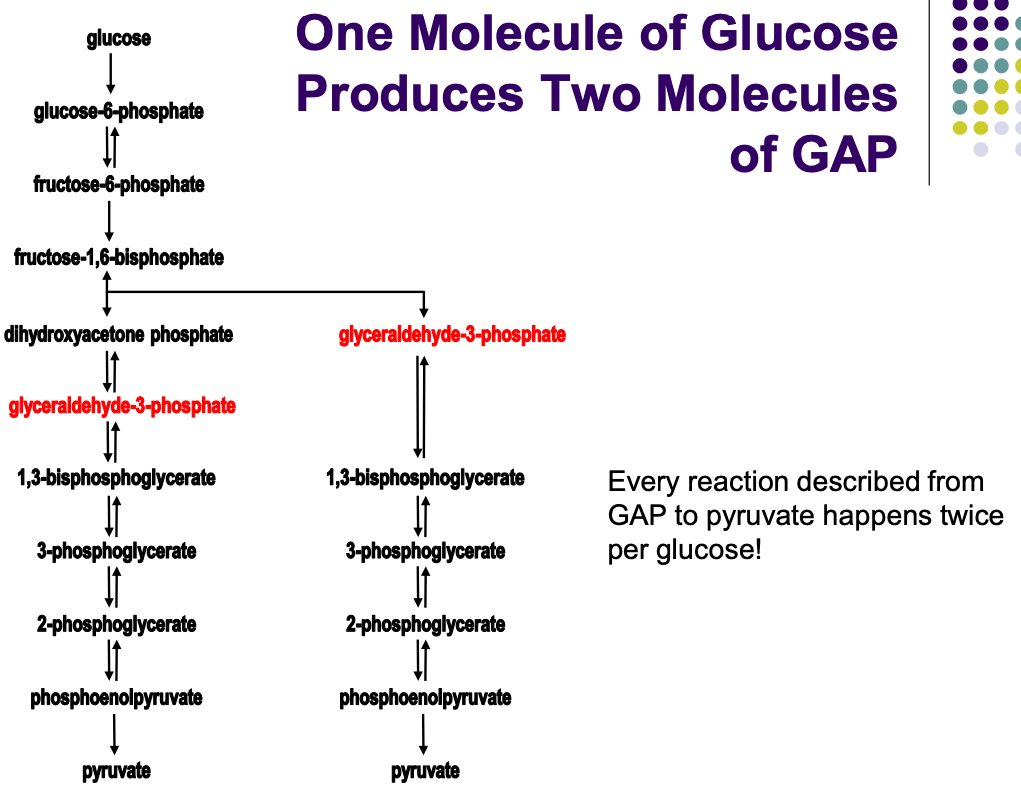 glucose –> GAP (x2)