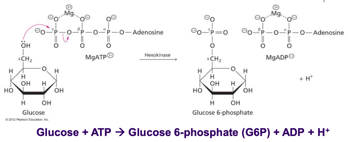 -converts glucose into glucose 6-phosphate (adds a phosphate group)