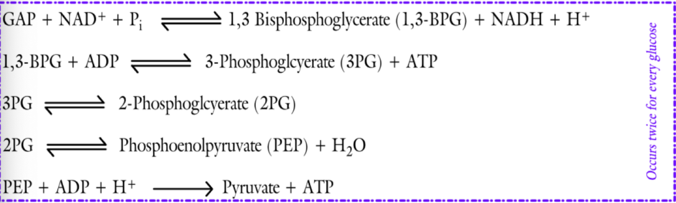 2 GAP –> 2 pyruvate