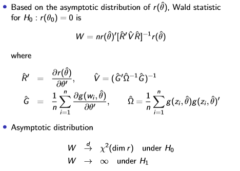 Define a Wald test statistic for a transformation of the parameter estimated using GMM. Where does the Test Converge?