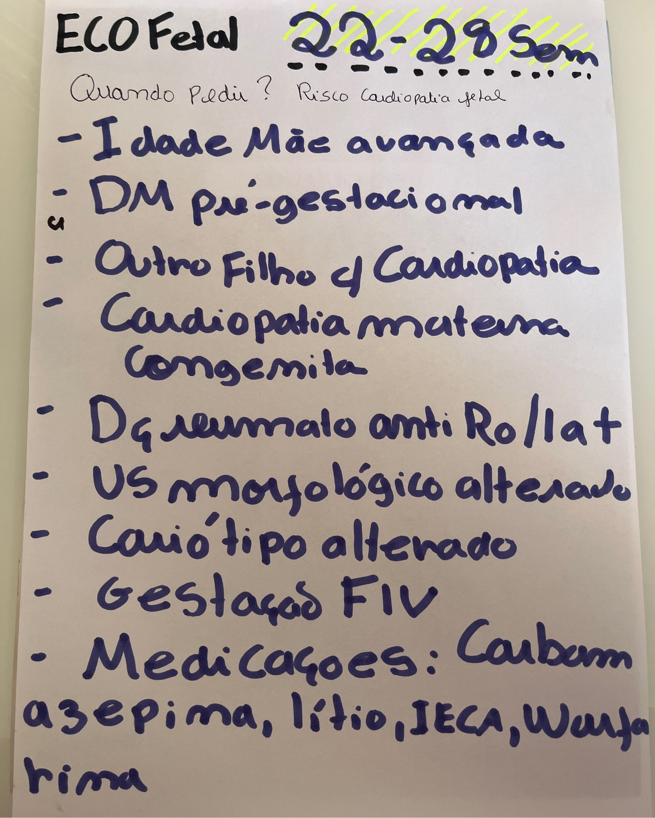 Qdo pedir ecocardiograma fetal? 22-28 semanas