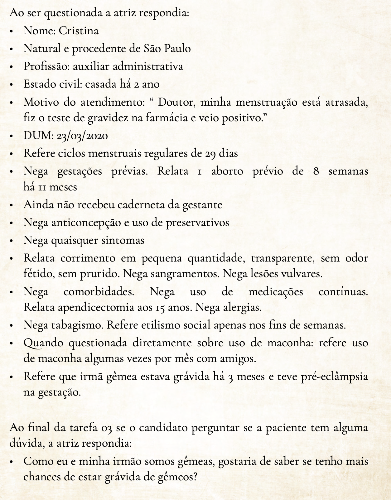 Realize o atendimento desta paciente.