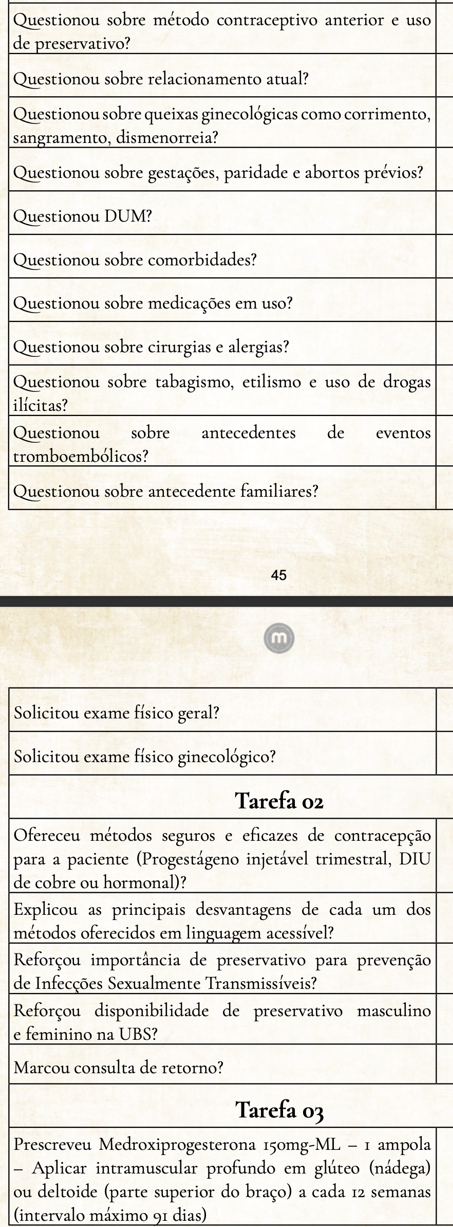 Checou se a paciente entendeu as orientações?