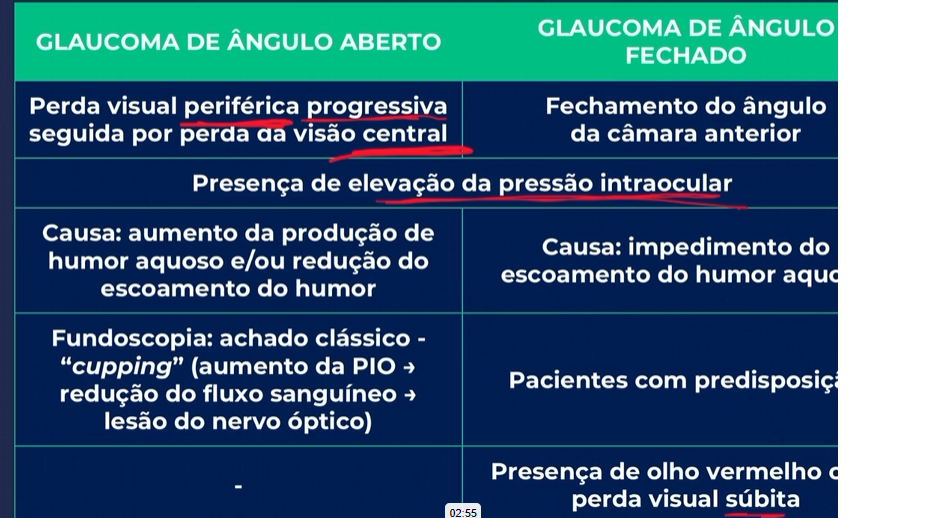 Qual a diferença entre glaucoma de angulo fechado e aberto?