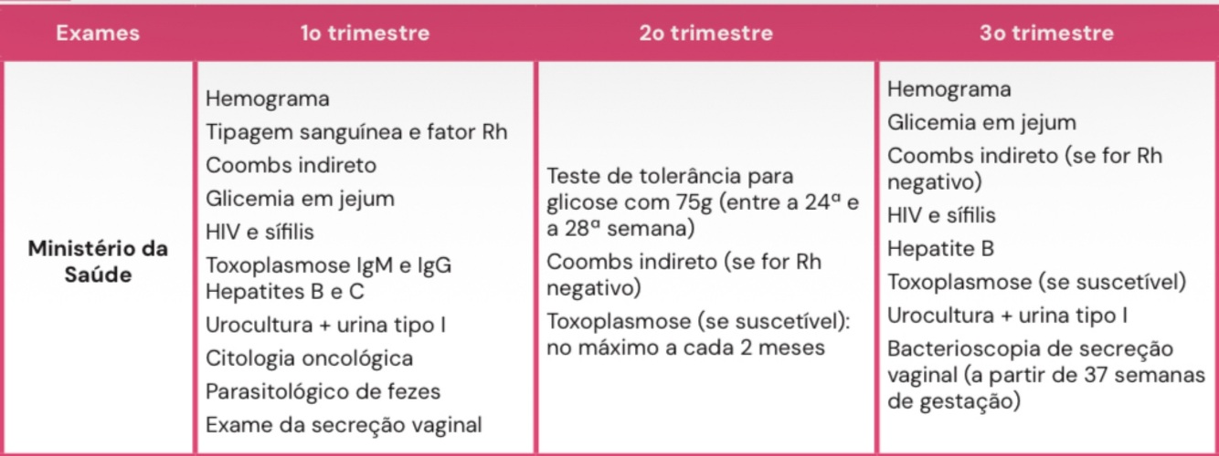 Quais exames complementares pedir em cada trimestre ?