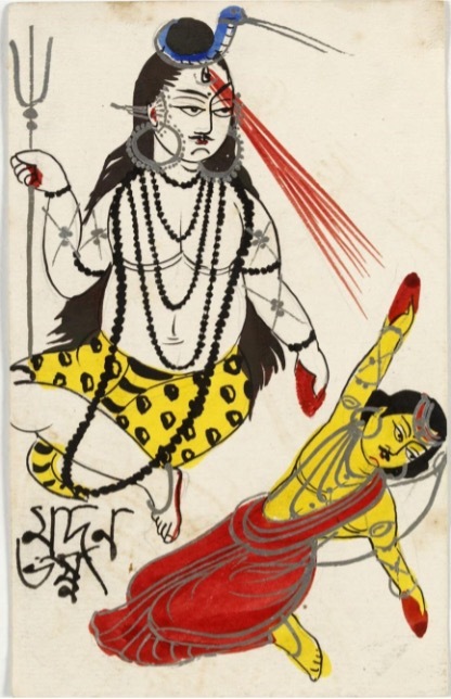 Siva strikes Kama with ray from his 3rd eye = Kama becomes Arianga