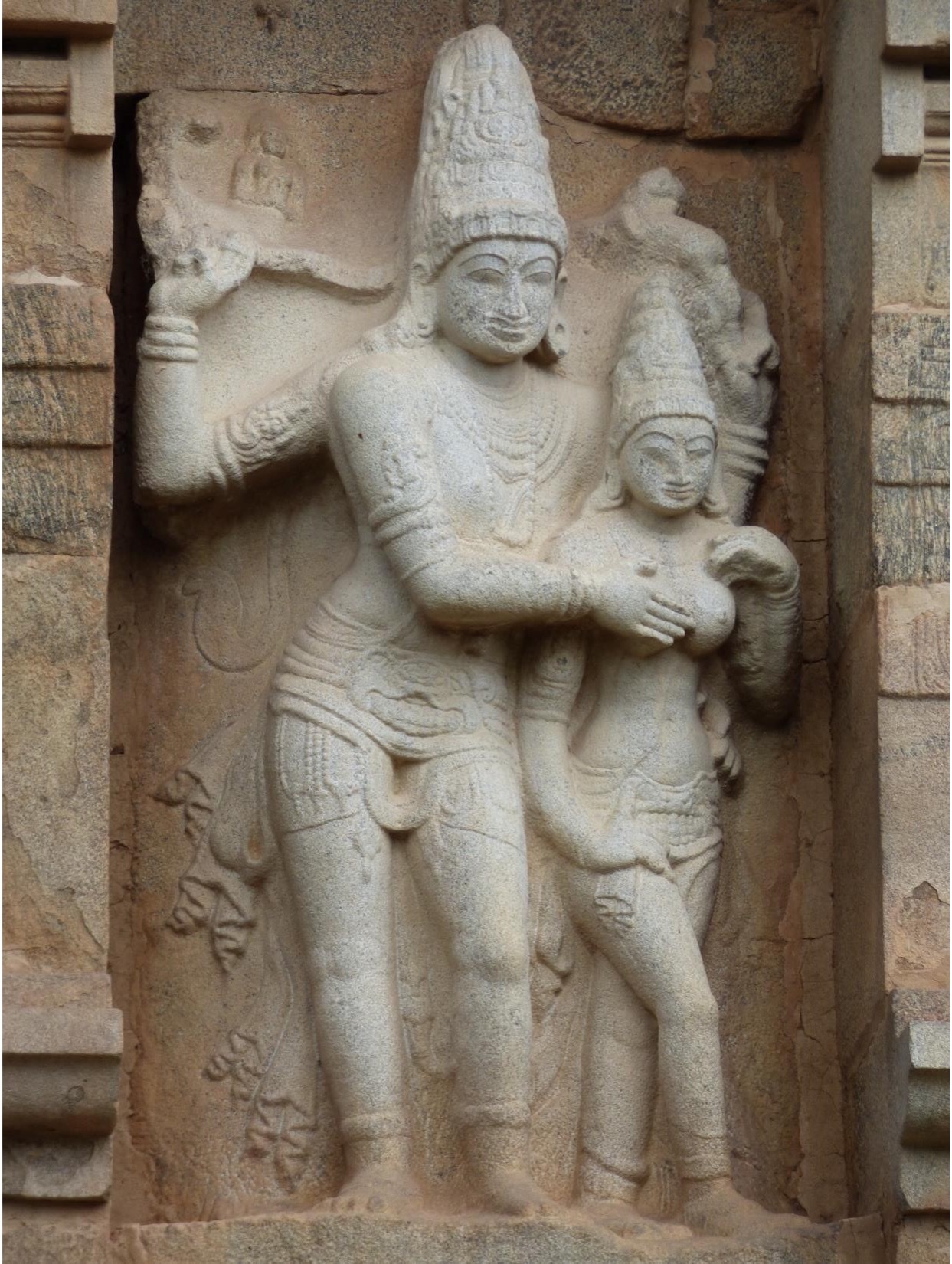 Paravti is afraid in Sivas arm because Ravana shakes the world (with 10 arms), Siva restores balance with his toe
