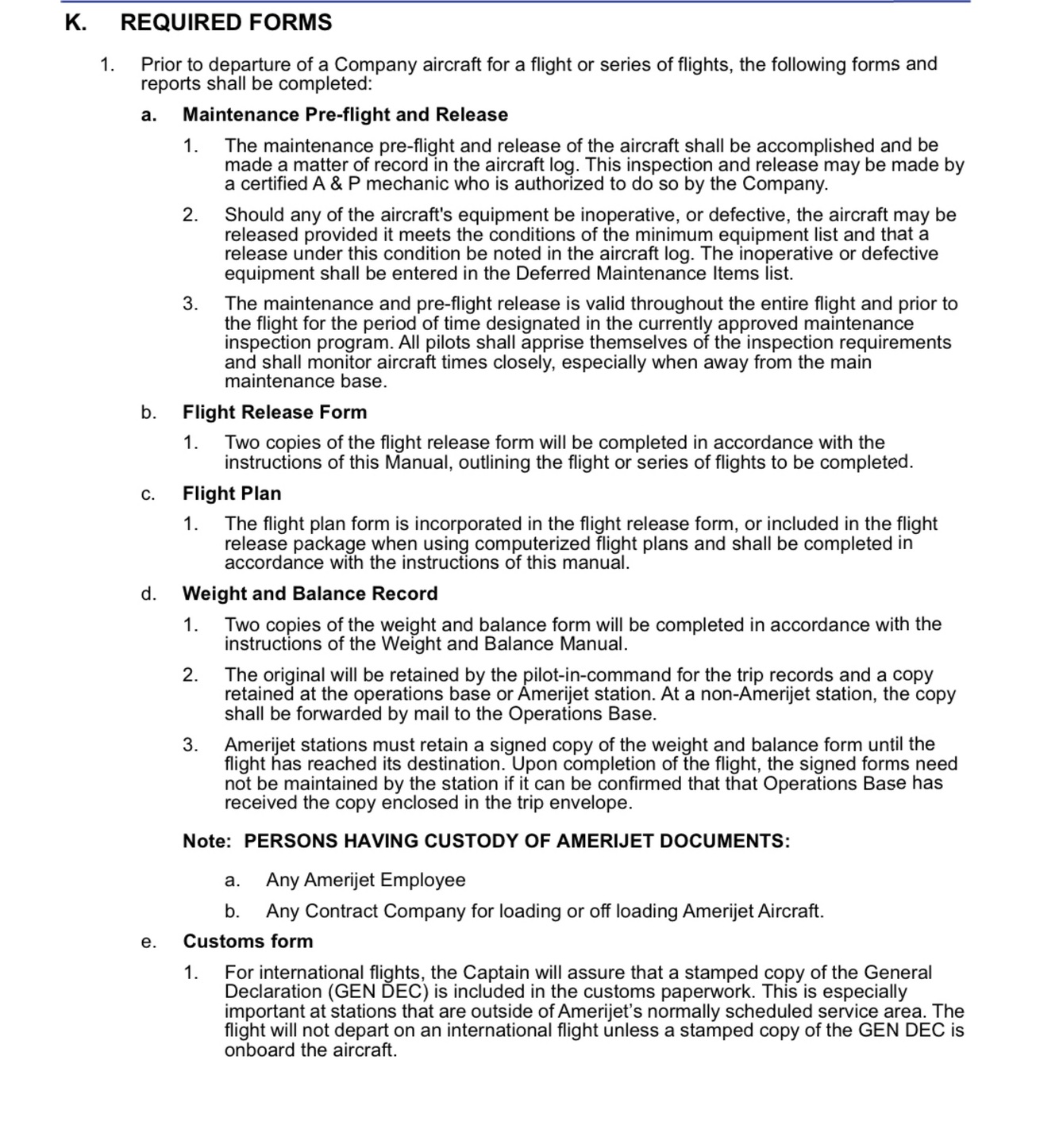 Required forms prior to departure