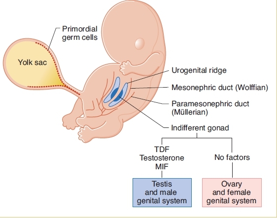 there are no specific ovarian or testicular characteristics ⇒ longitudinal elevation or ridge of intermediate mesoderm