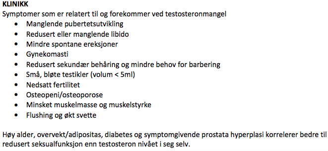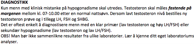 Hvilke prøver kan man ta for å diagnostisere mannlig hypogonadisme?