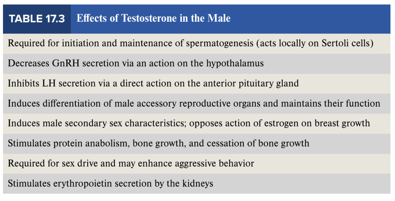 What are the effects of testosterone in males?