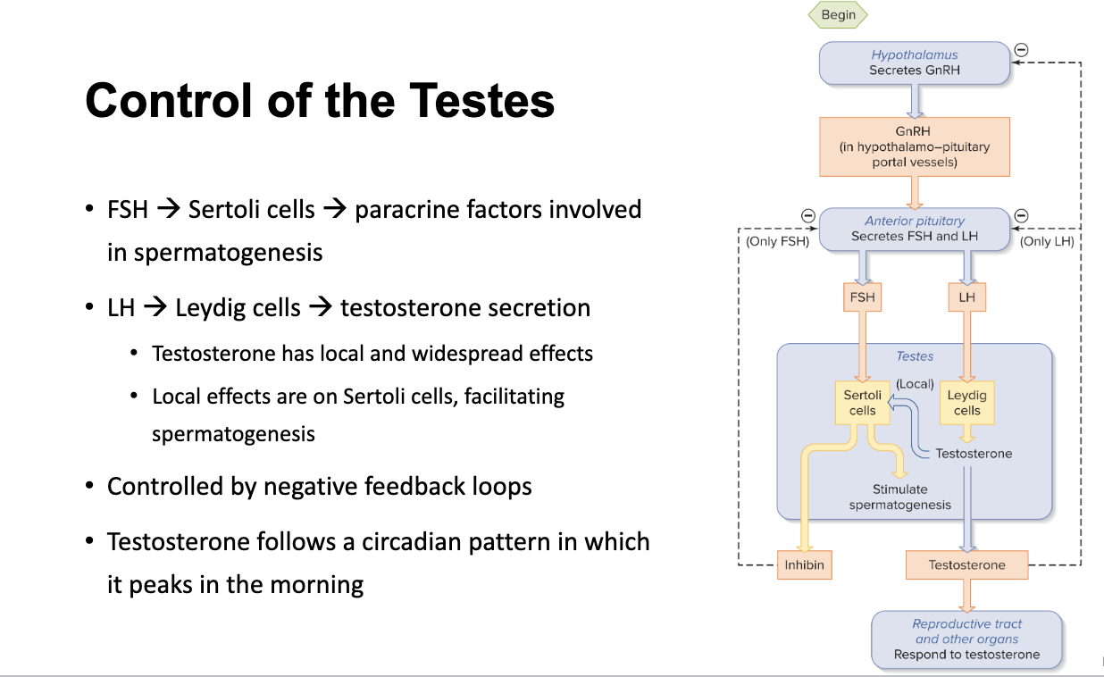 testosterone stops LH secretion and GnRH secretion - Negative fb loop