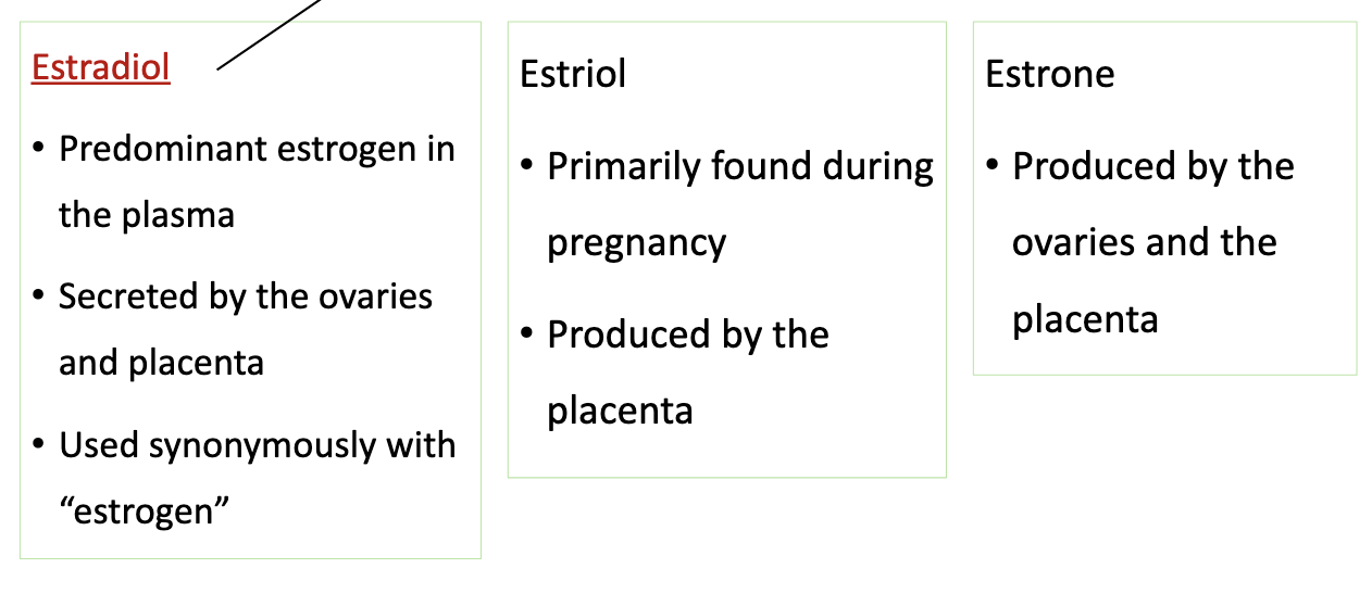 Differentiate b/w the 3 hormones of estrogen