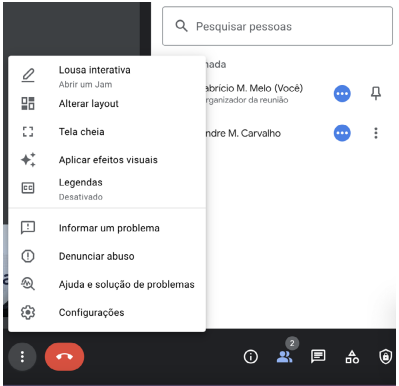 O segundo botão informa quais as pessoas estão participando da reunião, existindo a