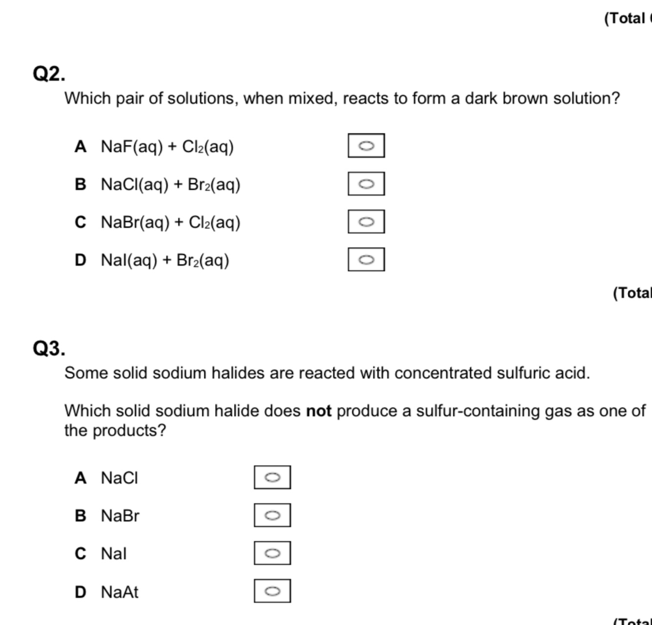 This question is about elements in Group 7 of the Periodic Table and their