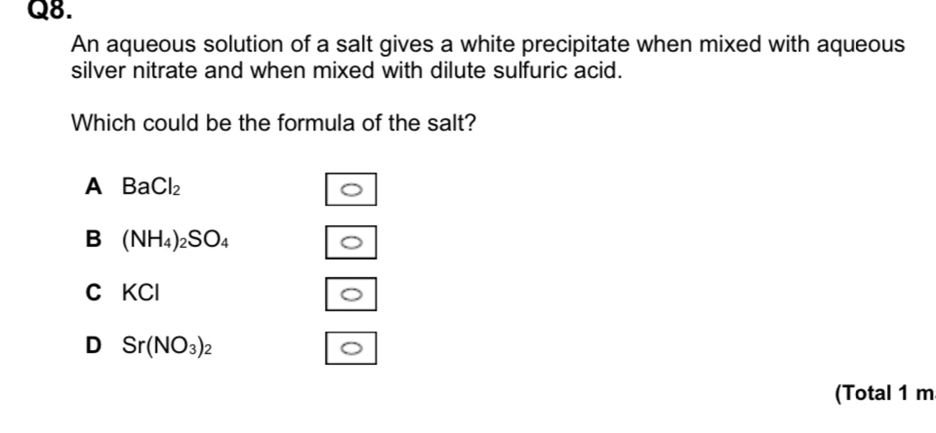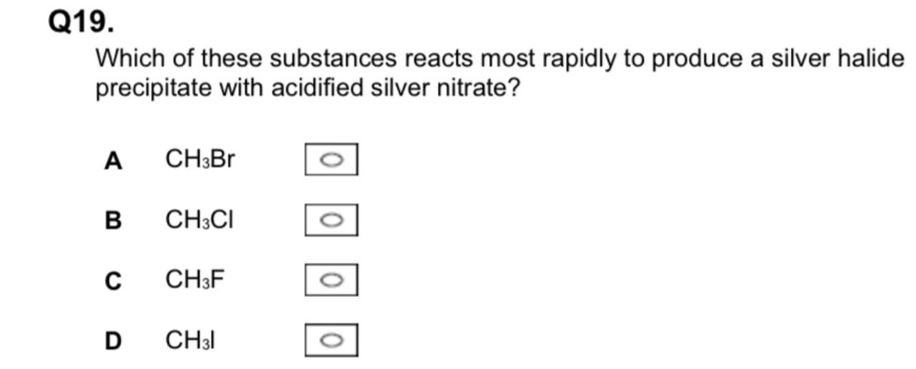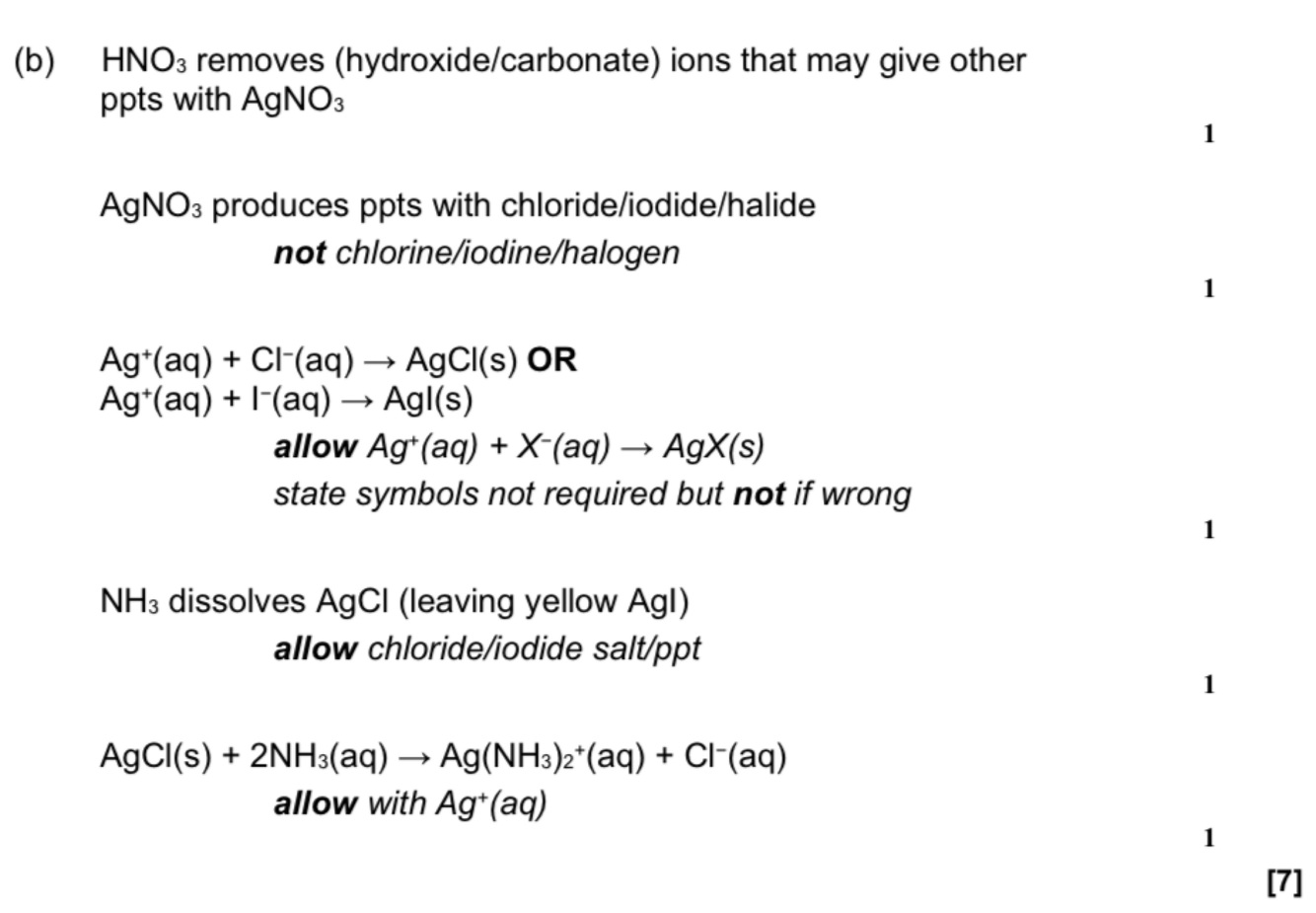 (b) A solution that is thought to contain chloride ions and iodide ions is tested.