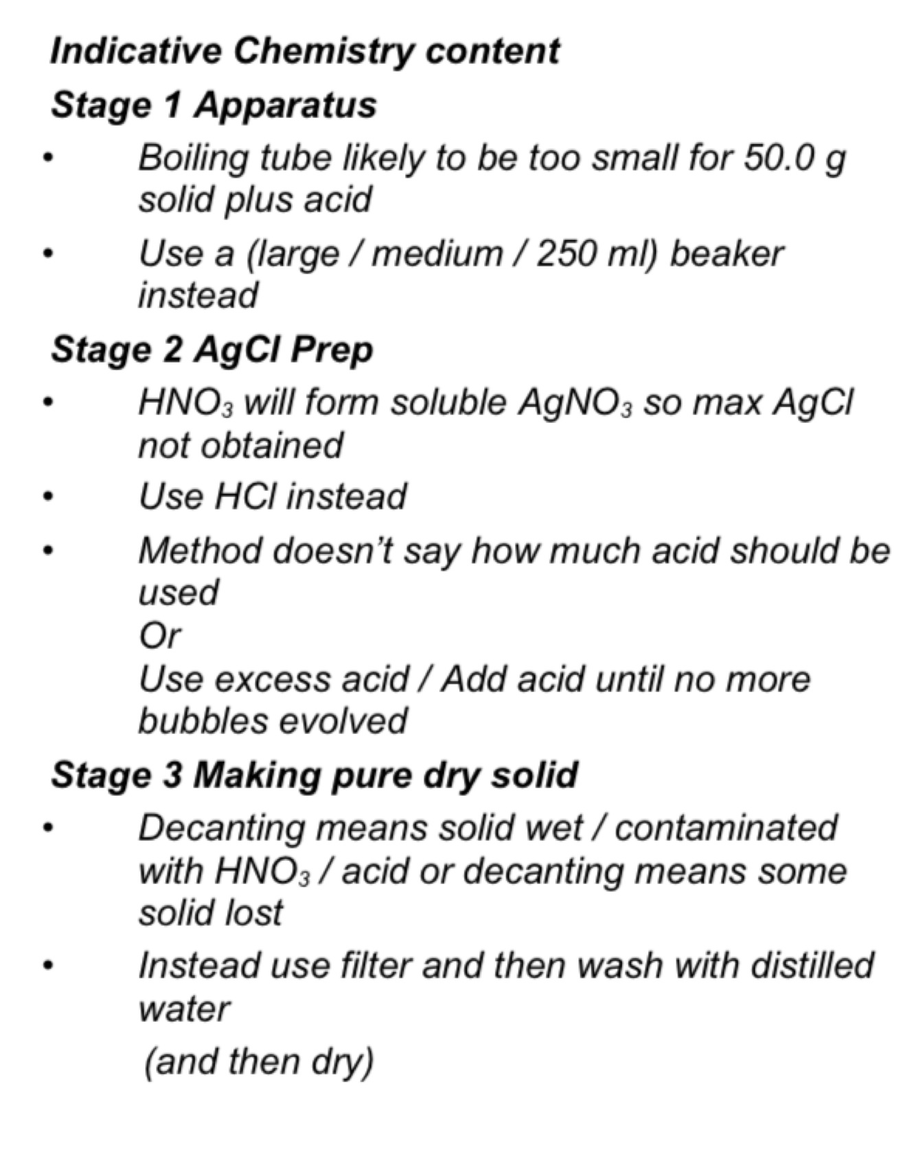 The student suggested the following method to obtain the maximum amount of pure dry silver chloride from the sample: