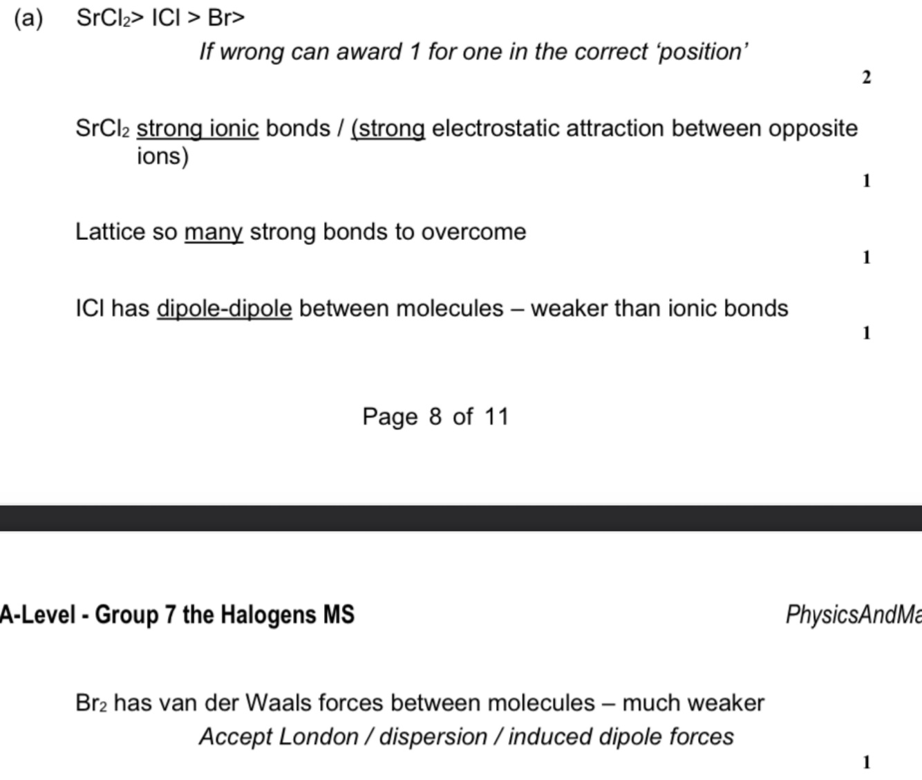 (a) Bromine (Br2), strontium chloride (SCI2) and iodine monochloride (ICI) all have similar M values.