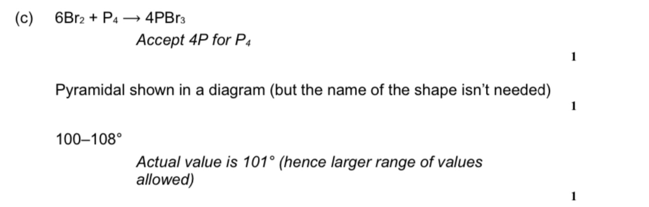 Write an equation for this reaction and draw the shape of the phosphorus tribromide molecule formed.