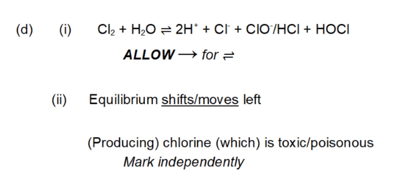 Explain how this affects the equilibrium established when chlorine is added to water.
