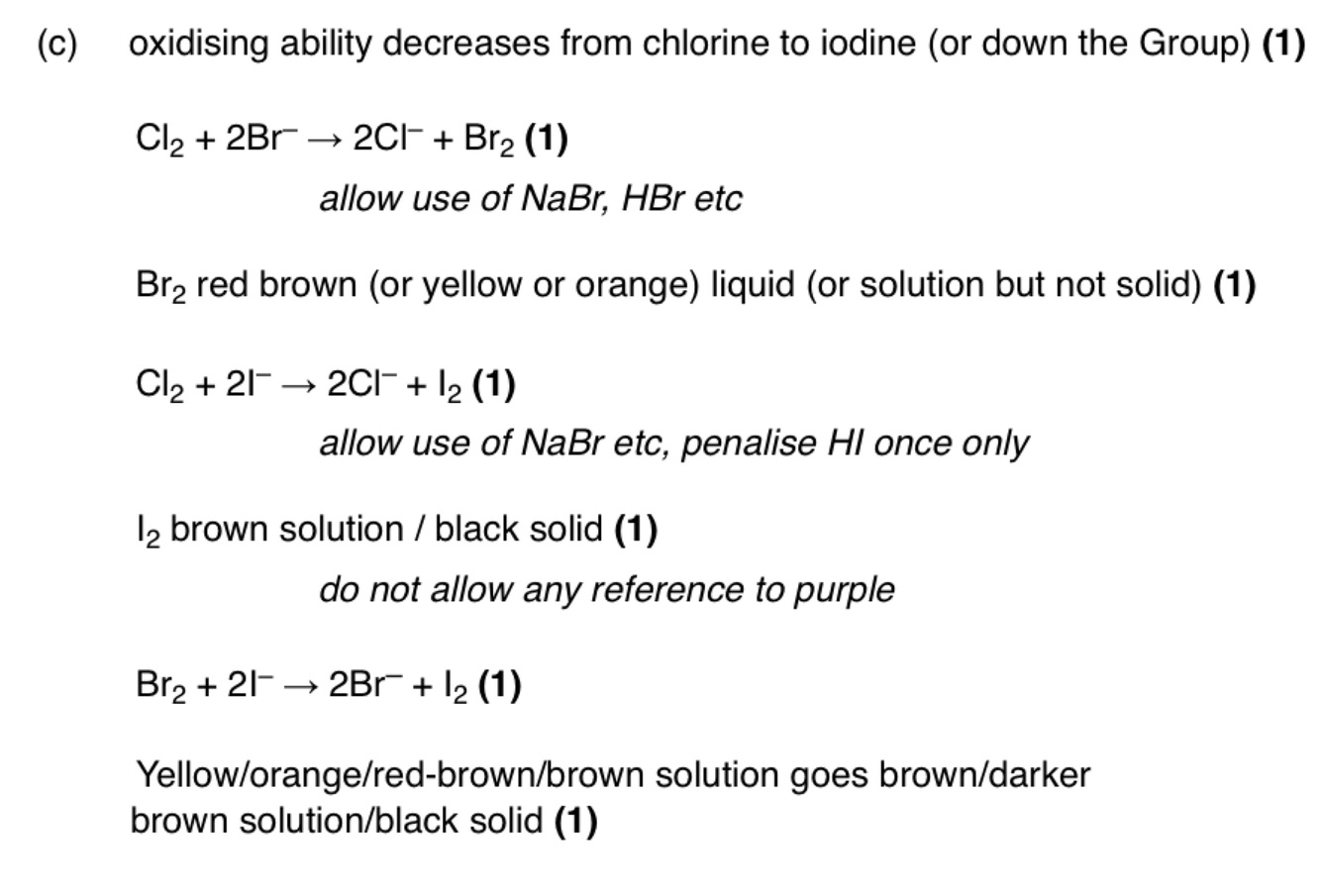 State the trend in the oxidising abilities of the elements down Group VIl from chlorine to iodine