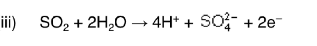 Deduce a half-equation for the oxidation of SO2 in aqueous solution forming