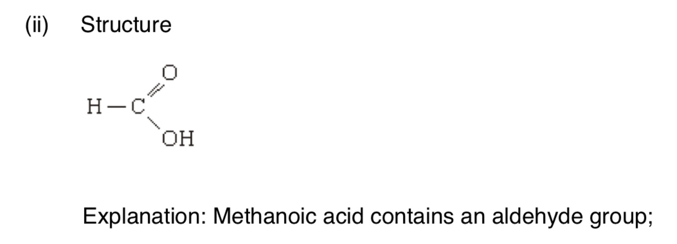 Draw the structure of methanoic acid. By reference to this structure, suggest why a silver mirror is formed when this acid reacts with tollens
