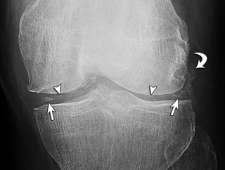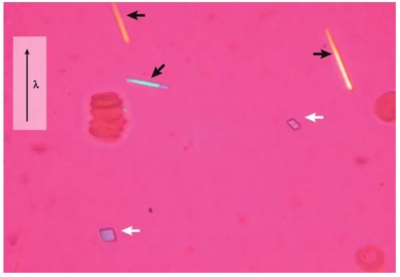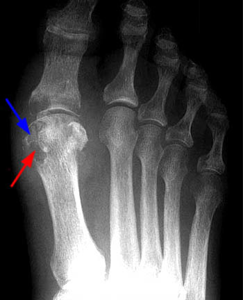 Crystal arthropathy associated with chronically high blood uric acid levels