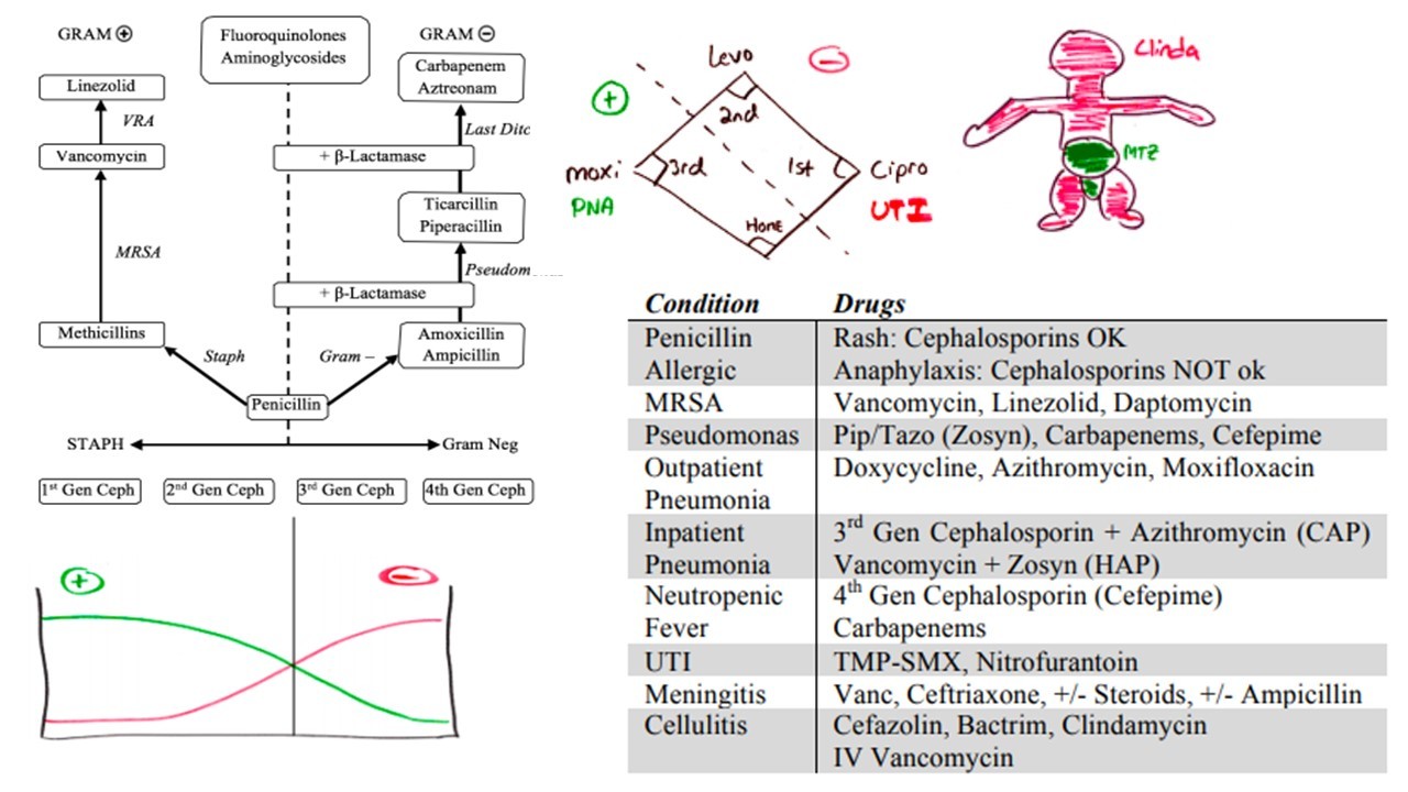 Pen al/MRSA/ SEVERE : vanc + low dose gentamicin (acts on biofilms well)