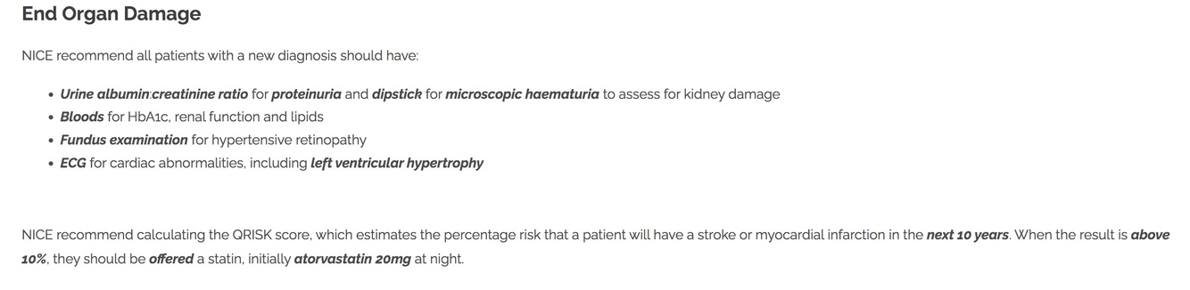 investigations nice recommends to all patients with a new diagnosis of HTN
