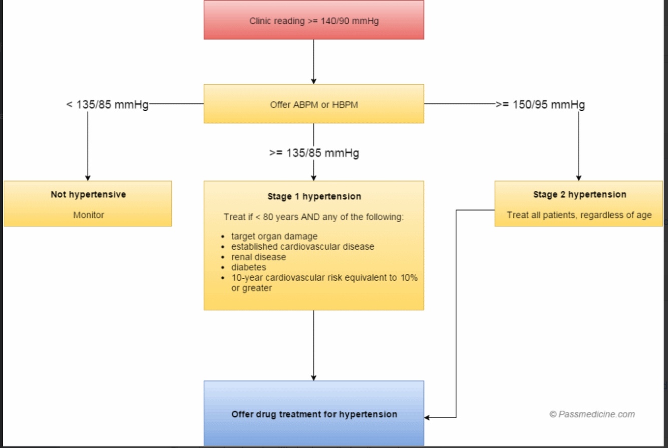 NICE flow chart for diagnosis of HTN and deciding who to treat