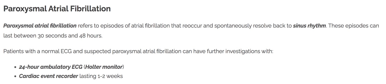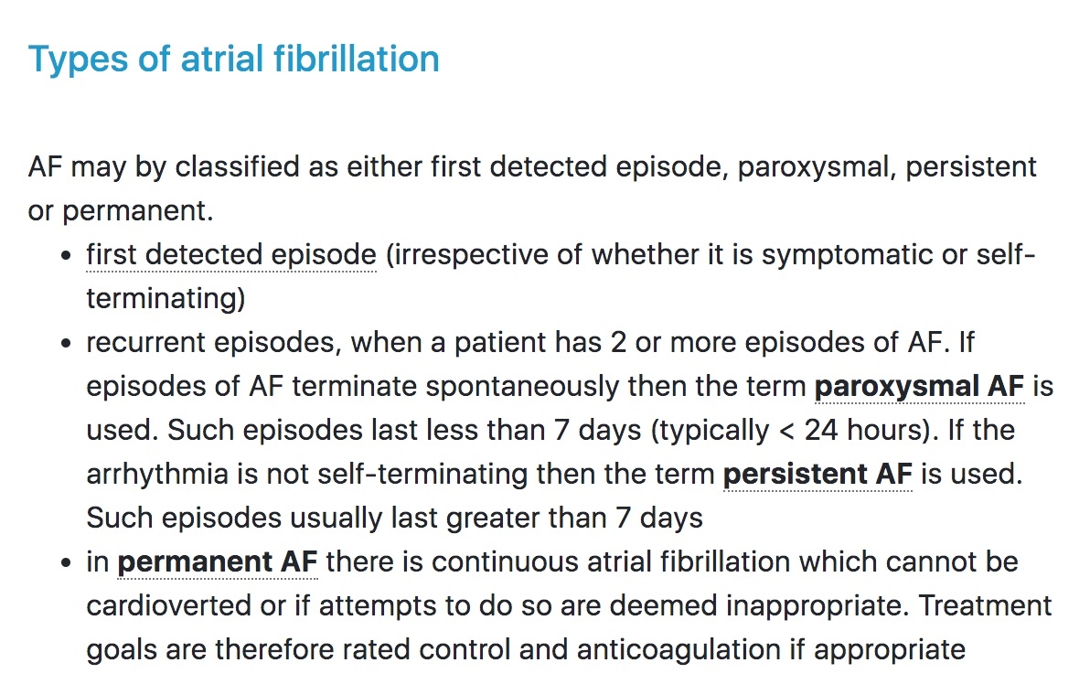 Atrial fibrillation (AF) is a condition where the electrical activity in the atria of the heart becomes disorganised, leading to fibrillation (random muscle twitching) of the atria and an irregularly irregular pulse.