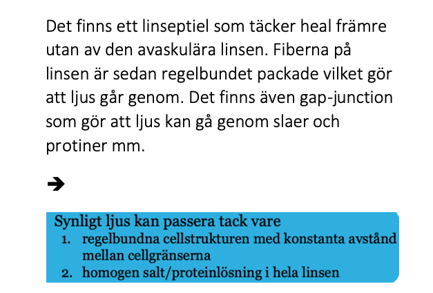 Hur är linsen uppbyggd? hur kommer ljus genom?