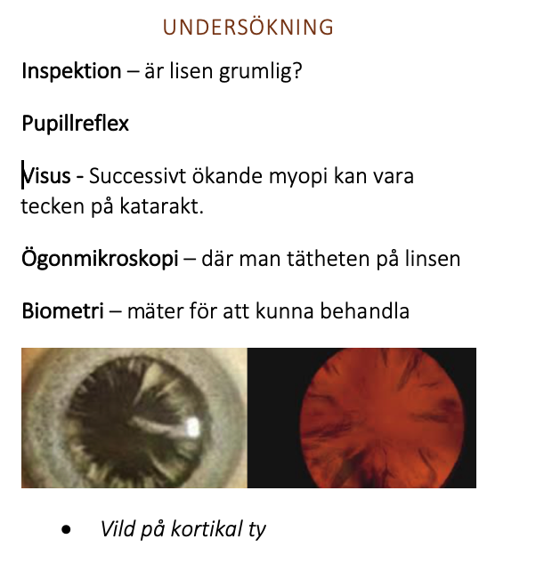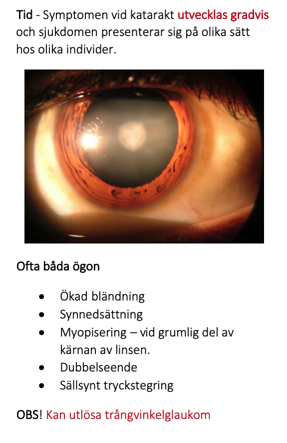 Är när man födds med katarakt vilateralt. Man ska därför undersöka alla barn efter: katarakt, retinoblastrom och missbildningar.