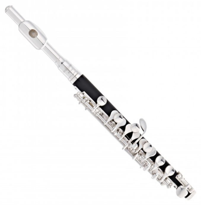 Small type of flute, uses treble clef and plays notes one octave higher than notes written